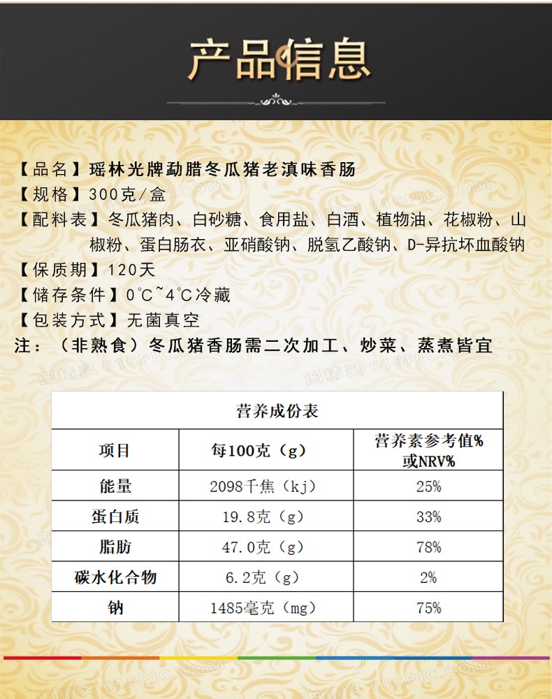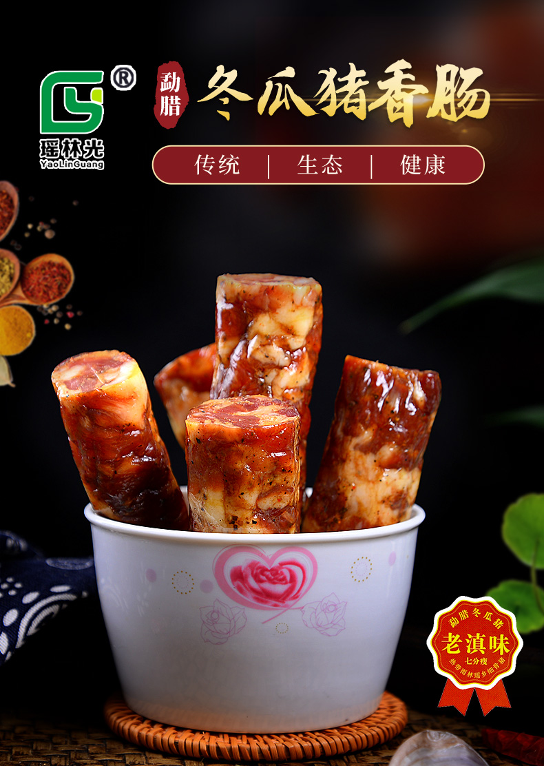 云南勐腊冬瓜猪·老滇味麻辣香肠·300克·盒装