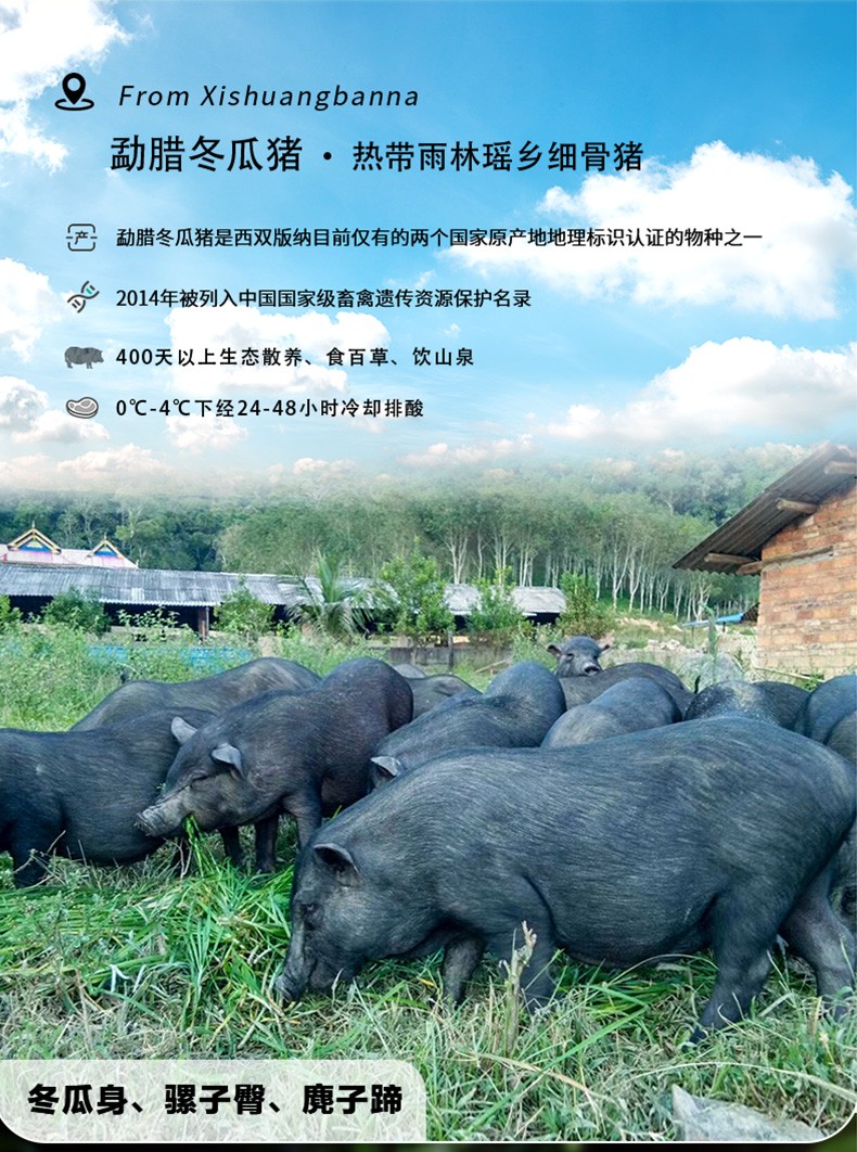 云南勐腊冬瓜猪·带皮后腿冷鲜肉·4斤(500克*4袋)