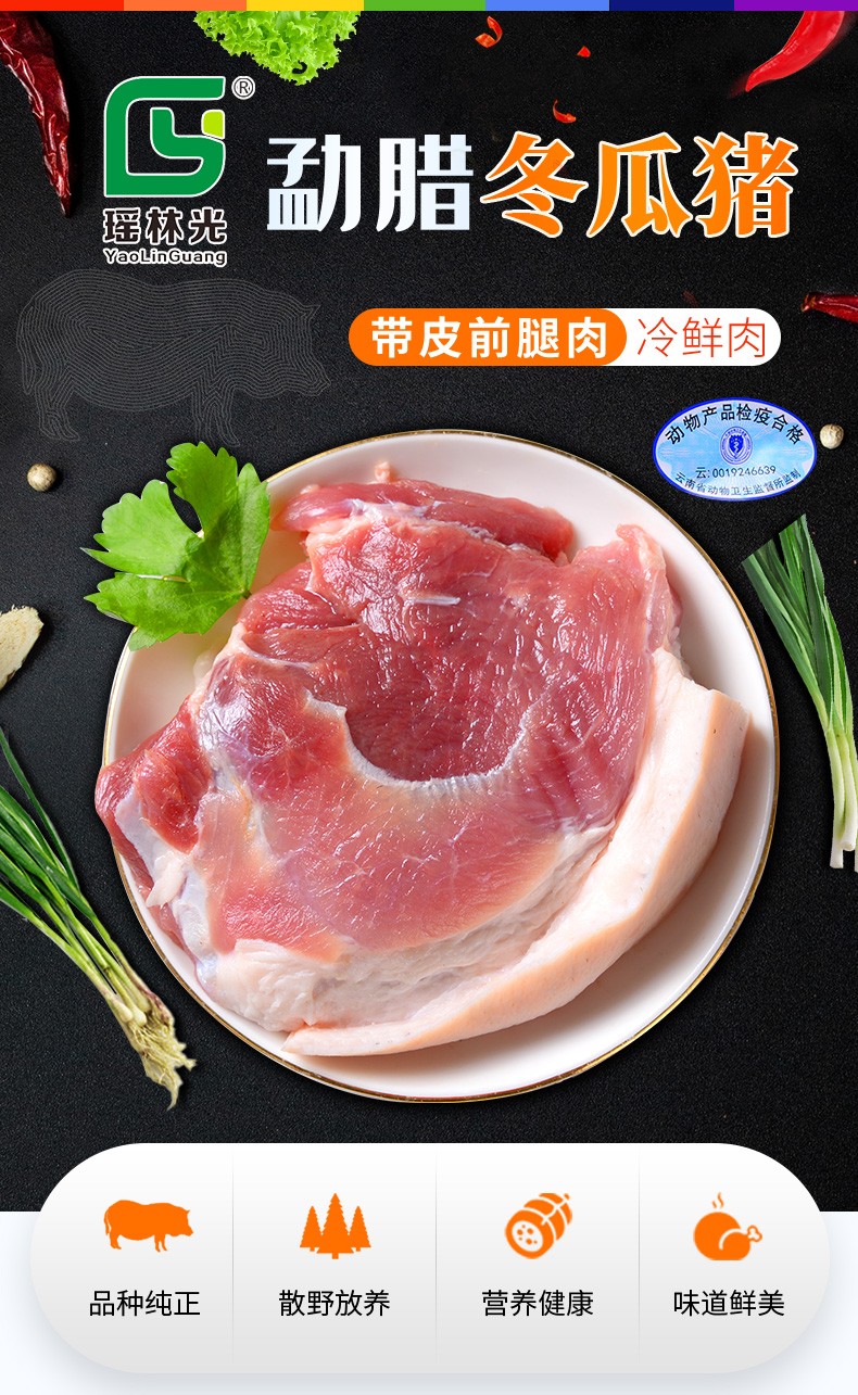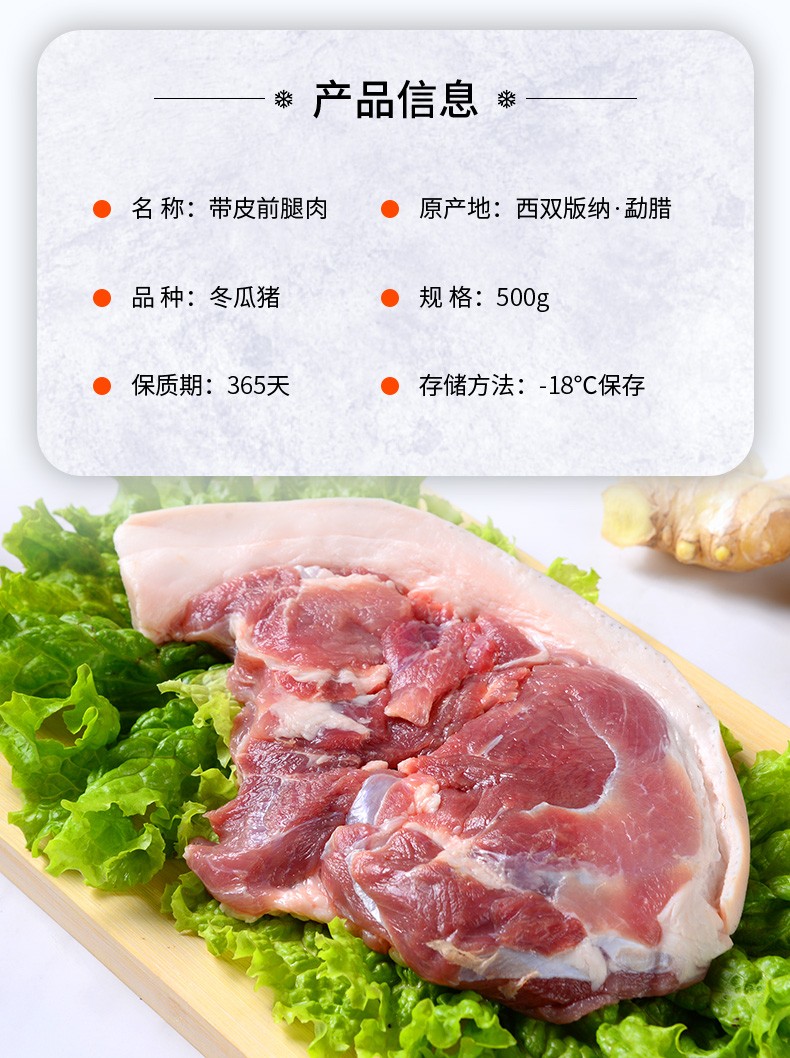 云南勐腊冬瓜猪·带皮前腿冷鲜肉·4斤(500克*4袋)